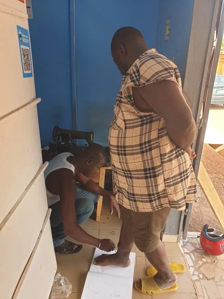 To address this, the Foundation has funded the production of custom-made orthopedic shoes, specifically designed to rebalance his posture by compensating for the difference in leg length.